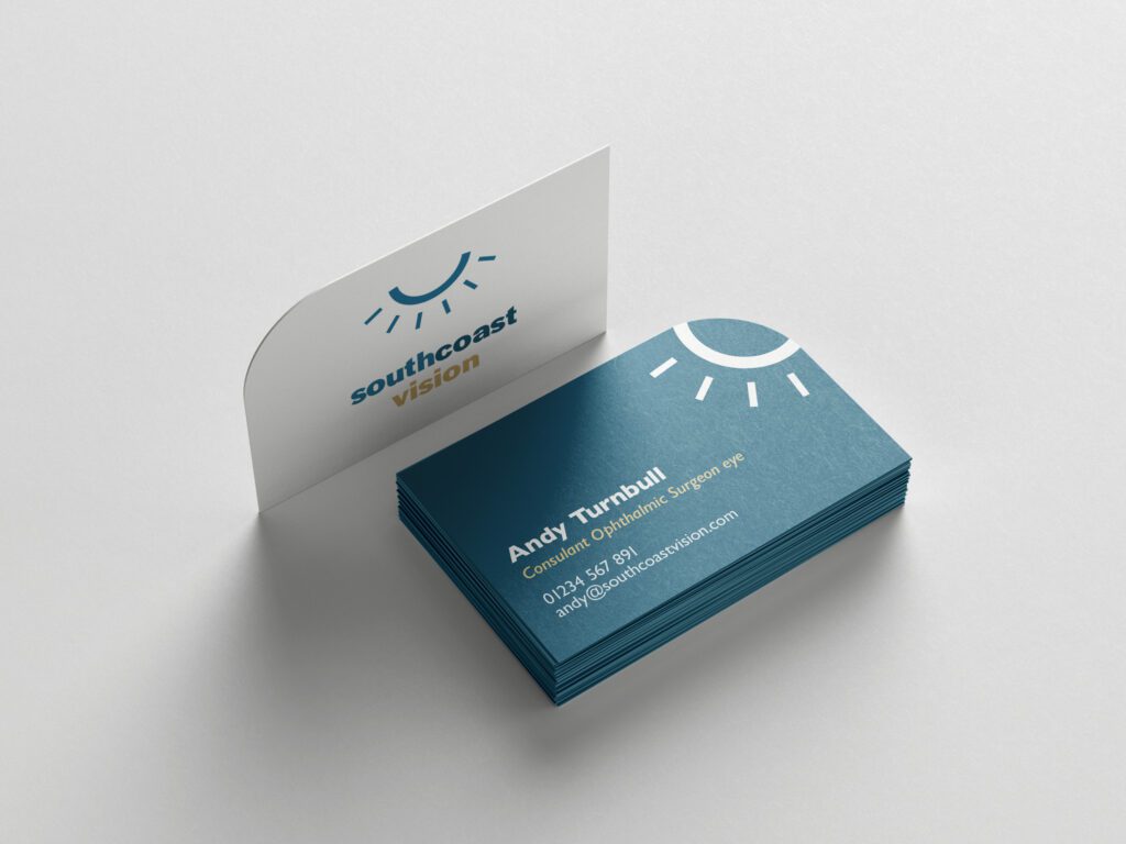 South Coast Vision is the private eye care practice of Mr Andrew Turnbull, Consultant Eye Surgeon. We combined the elements of an eye and of the south coast sun to create a unique and dual-purpose icon. The colours used also emphasise the clerical and medical practice, while also referencing coastal notes with sandy gold and deep blues.